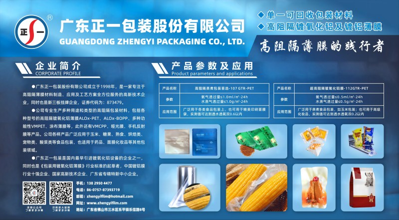 作為國家高新技術(shù)企業(yè)、廣東省“專精特新”企業(yè),鍍氧化鋁膜行業(yè)標(biāo)準(zhǔn)的制定單位之一,廣東正一包裝一直致力于高阻隔薄膜的研發(fā)。正一包裝的高阻隔產(chǎn)品在客戶中有著十分高的知名度與認(rèn)可度,在行業(yè)內(nèi)可謂是聞名遐邇。