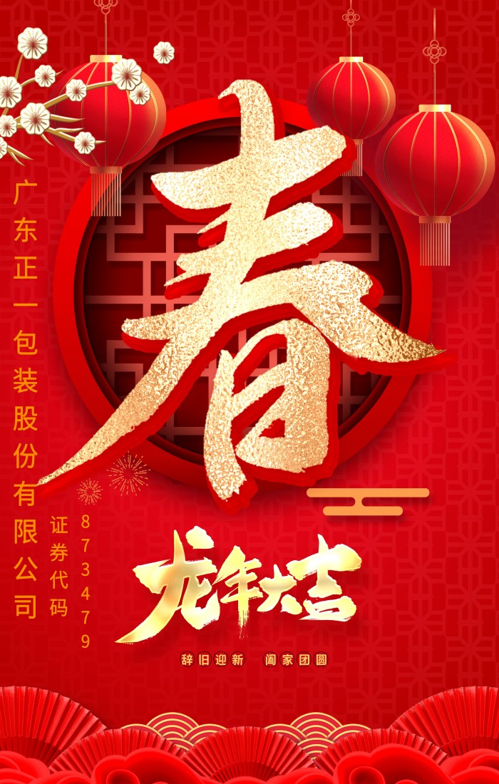 在此,廣東正一包裝攜全體員工祝愿各位新老客戶萬事勝意,身體健康,新春愉快,龍年大吉!
