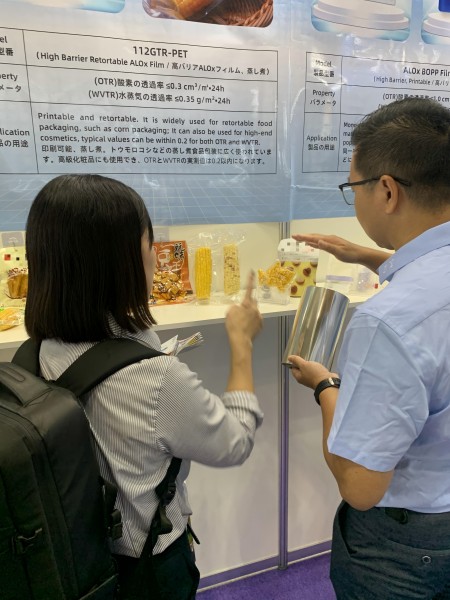 環(huán)保包裝和功能性包裝是本屆展覽的一大亮點。在全球環(huán)保意識不斷提升的背景下,消費者和監(jiān)管機構(gòu)對企業(yè)的環(huán)保要求日益嚴苛。正一包裝主打的高阻隔鍍氧化鋁薄膜,是一款能替代鋁箔的高阻隔材料,通過去鋁化的包裝方式,達到了環(huán)保的功效,吸引了眾多國內(nèi)外客戶咨詢。除此之外,正一包裝提供的高阻隔OPP產(chǎn)品,作為單一材質(zhì)包材中的一環(huán),也為客戶探究環(huán)保包裝材料提供了新的思路和解決方案。